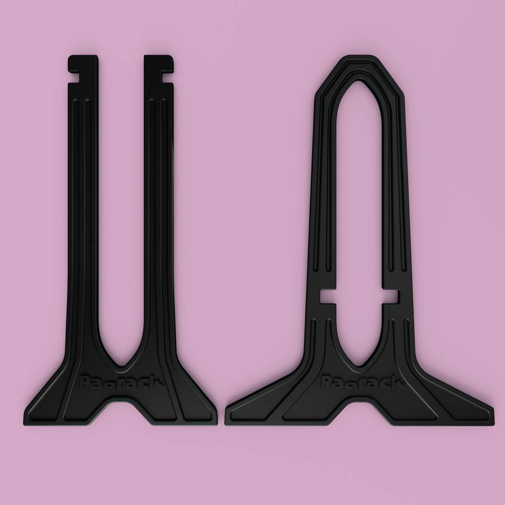Meet the Paqrack, an innovative bike stand with a minimalist two-piece design that keeps your bike upright by cradling the wheels—no frame contact, no clunky supports. It sets up in seconds, travels light, and looks great in any space. Whether at home or on the trail, Paqrack offers a clean, simple way to park your ride.